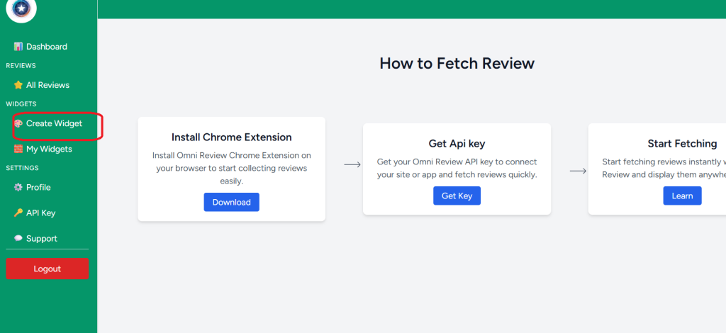 1. Simply go to your OmniReview account and click on the ‘Create Widget’ option.