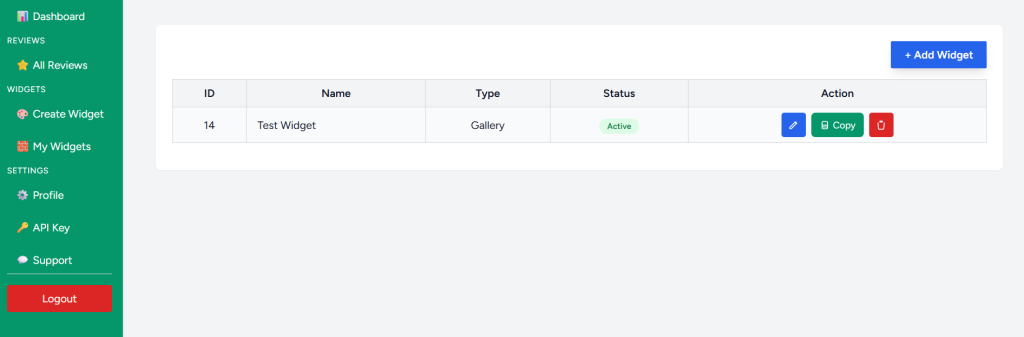 7. After saving, you will see the created widget on your dashboard. Simply click on ‘Copy’ and paste it wherever you want—it will work everywhere.
