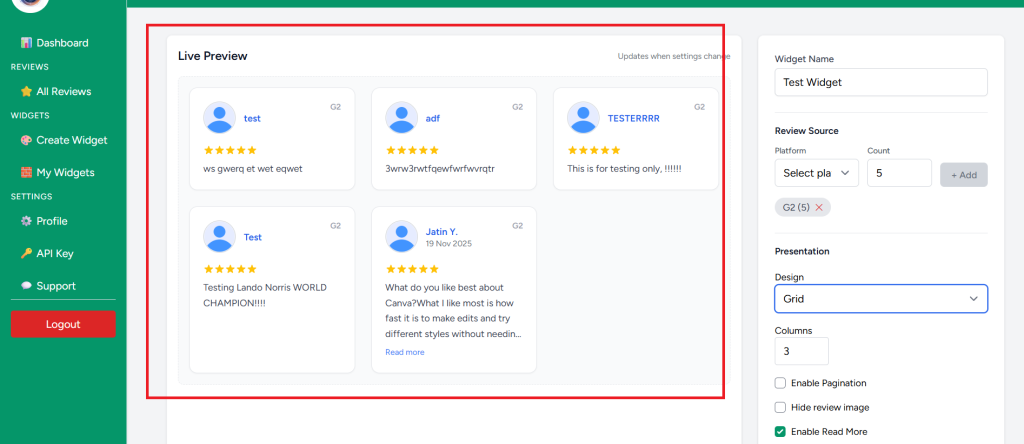 6. You can also change the color of your reviews. Once all customizations are done, click on ‘Save Widget.’